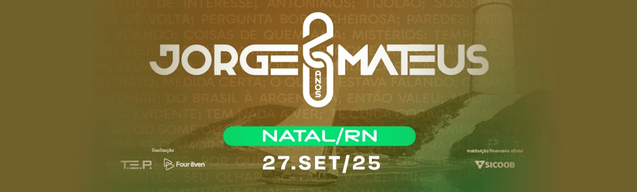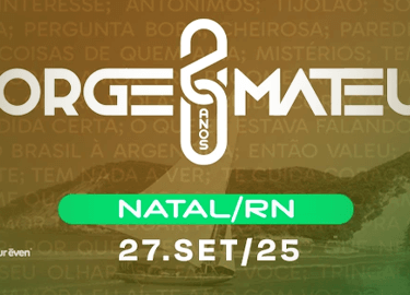 A turnê Jorge & Mateus 20 anos está chegando a Natal e a expectativa está nas alturas! No dia 27 de setembro, a Arena das Dunas vai se transformar no palco de uma celebração épica que vai ficar marcada na memória de todos que comparecerem. Se você é fã de música sertaneja, não pode perder essa oportunidade!